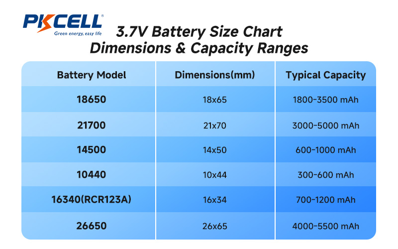 Common 3.7V Battery Sizes & Specifications
