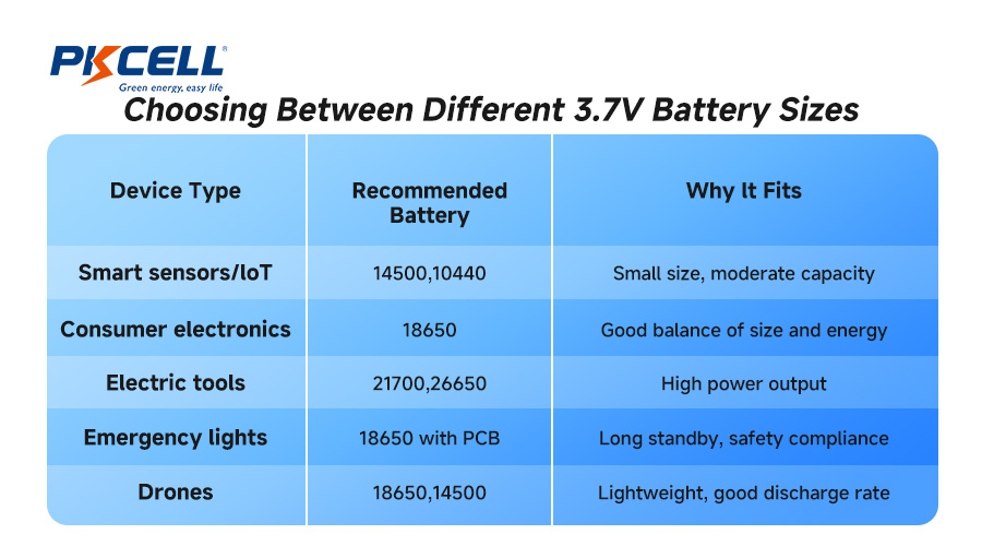 Choosing Between Different 3.7V Battery Sizes
