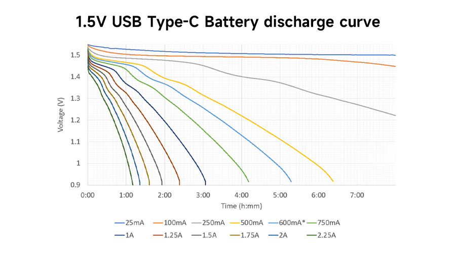 - The USB-C lithium batteries maintain a constant 1.5V Output until the charge is exhausted.