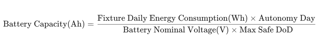 Professional engineers and product designers must accurately calculate battery capacity when selecting a solar street light battery to ensure the cycle life and continuous run-time needs are met, especially during successive overcast days. The correct calculation is the foundation of system reliability: